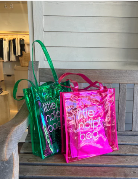 A new stitch club tote bag! Our "little ndlpt bag" pvc tote is the perfect bag to house your project bags, stretcher bars, neck lights, and anything else you might need to bring to stitch club or any other place you might be stitching.